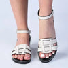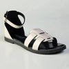A refined sandal with a modern edge, designed in a glossy black finish. Its wide woven straps at the front create a bold statement, while the ankle strap with buckle fastening ensures a secure and stylish fit. Minimal yet sophisticated, this sandal balances comfort and polish, making it perfect for both casual and dressed-up occasions.